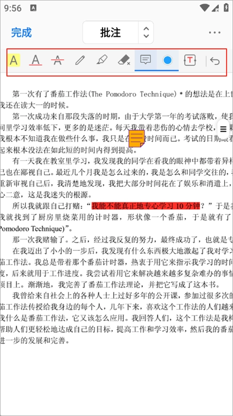 当切换到可编辑状态后,对文本内容进行调整,并借助界面上方工具栏中的标注功能,对关键信息进行标识。