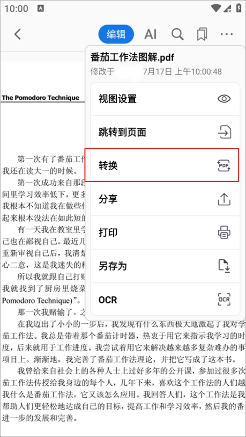 打开PDF文件后,点击工具栏上的“编辑”按钮