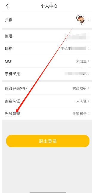 接下来,你只需在个人中心页面找到并点击账号管理选项,就能继续后续的操作流程了。
