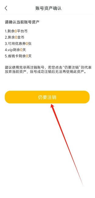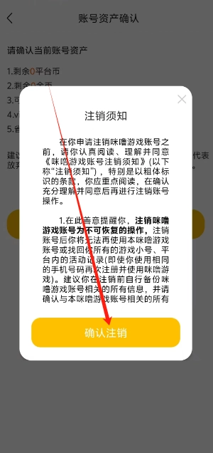 在账号资产确认页面中,用户直接点击任要注销即可。