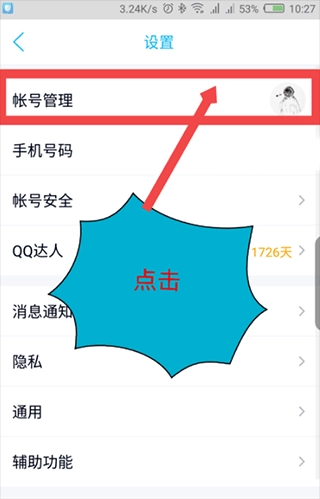 在设置里面,点击最上面的账号管理。