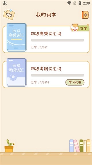 在打开的页面里,用户能找到自己已有的词本,点击右上角的加号按钮,就能创建新的词本了。