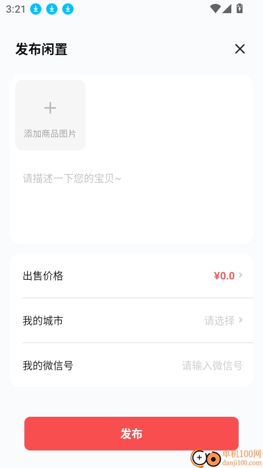 接下来就能够填写自己的闲置物品信息,上传相关图片后点击“发布”按钮,就能一键完成发布。
