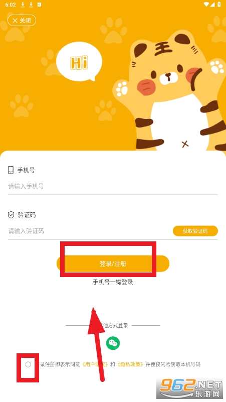 请输入手机号和验证码,勾选用户协议后