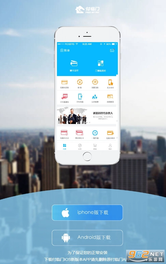 付临门是一款融合手机支付与生活应用功能的新一代支付软件,依托加密传输、手机认证等多重