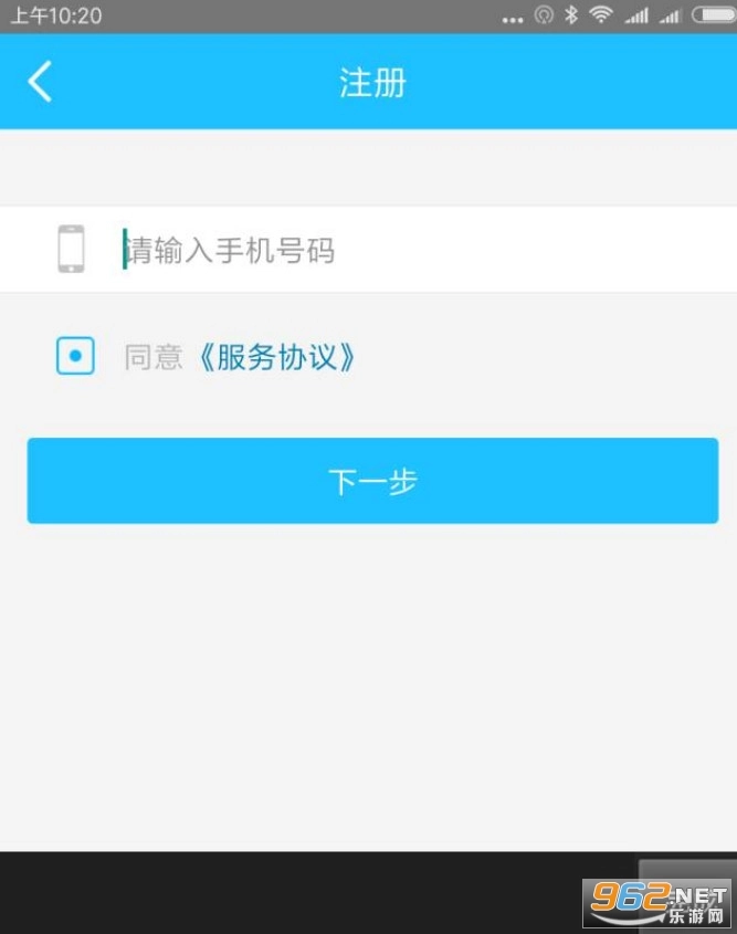 安装完成后:点击注册,输入手机号码,下一步。