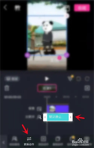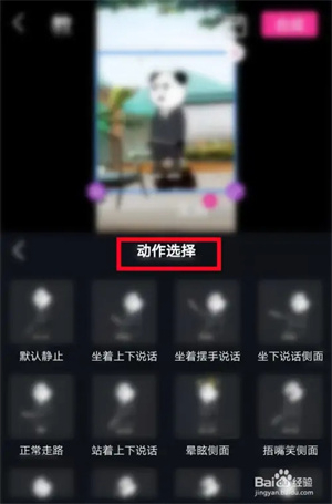 然后点击角色,再点击角色栏里的动作选项,在底部弹出的选项中选择“更换动作”,这样就能挑选一些动态的动作了。