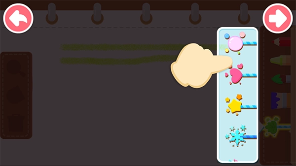 丰富的画笔工具:铅笔、蜡笔、毛笔、刷子……宝宝喜欢用哪种工具画画?快来选选!还可以交替使用多种画笔,绘制心中的理想画作。