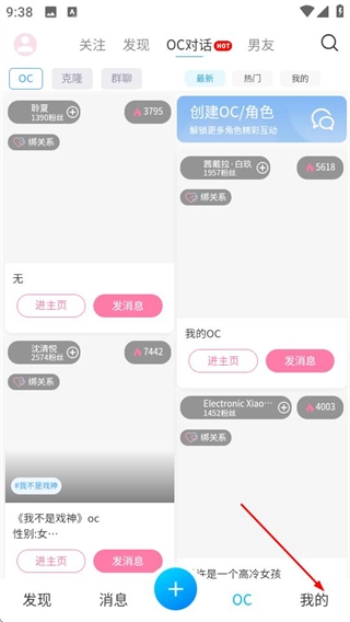 在芋泥OC的首页,点击底部导航栏里的“我的”选项,就能进入个人中心页面啦。