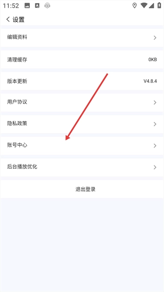 在设置页面中,点击【账号中心】选项。