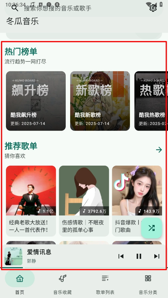 拥有丰富的音乐歌单合集,涵盖流行、摇滚、古典等多种曲风,包括热门歌单、情绪歌单和独立音乐人合集,满足多样化听歌需求。