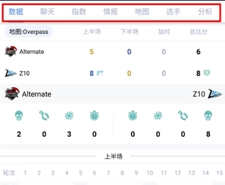 点击数据栏,既能查看赛事数据、选手表现等比赛实时数据,也能切换查看专业分析,从而了解比赛背后的战术与策略。