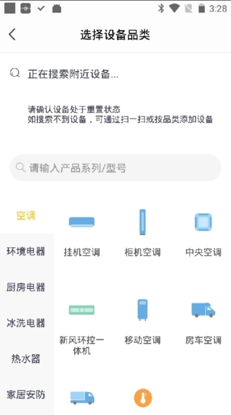 手动选择设备品类:如果扫描二维码后未能找到设备,可以点击右上角的设备品类界面寻找。