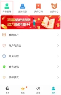 在应用程序首页的底部导航栏中,依次点击“我的”选项,接着进入“户号管理”页面,最后选择“绑定户号”功能。