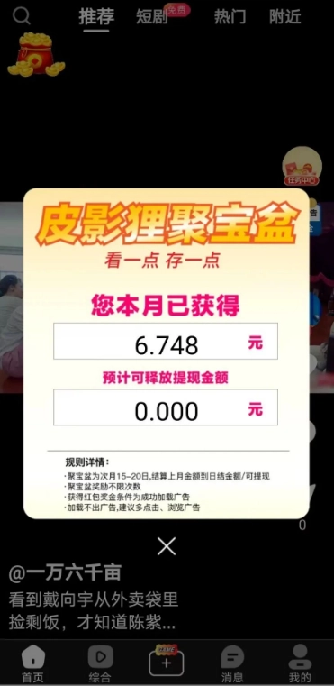 通过观看、社交互动获得现金红包。