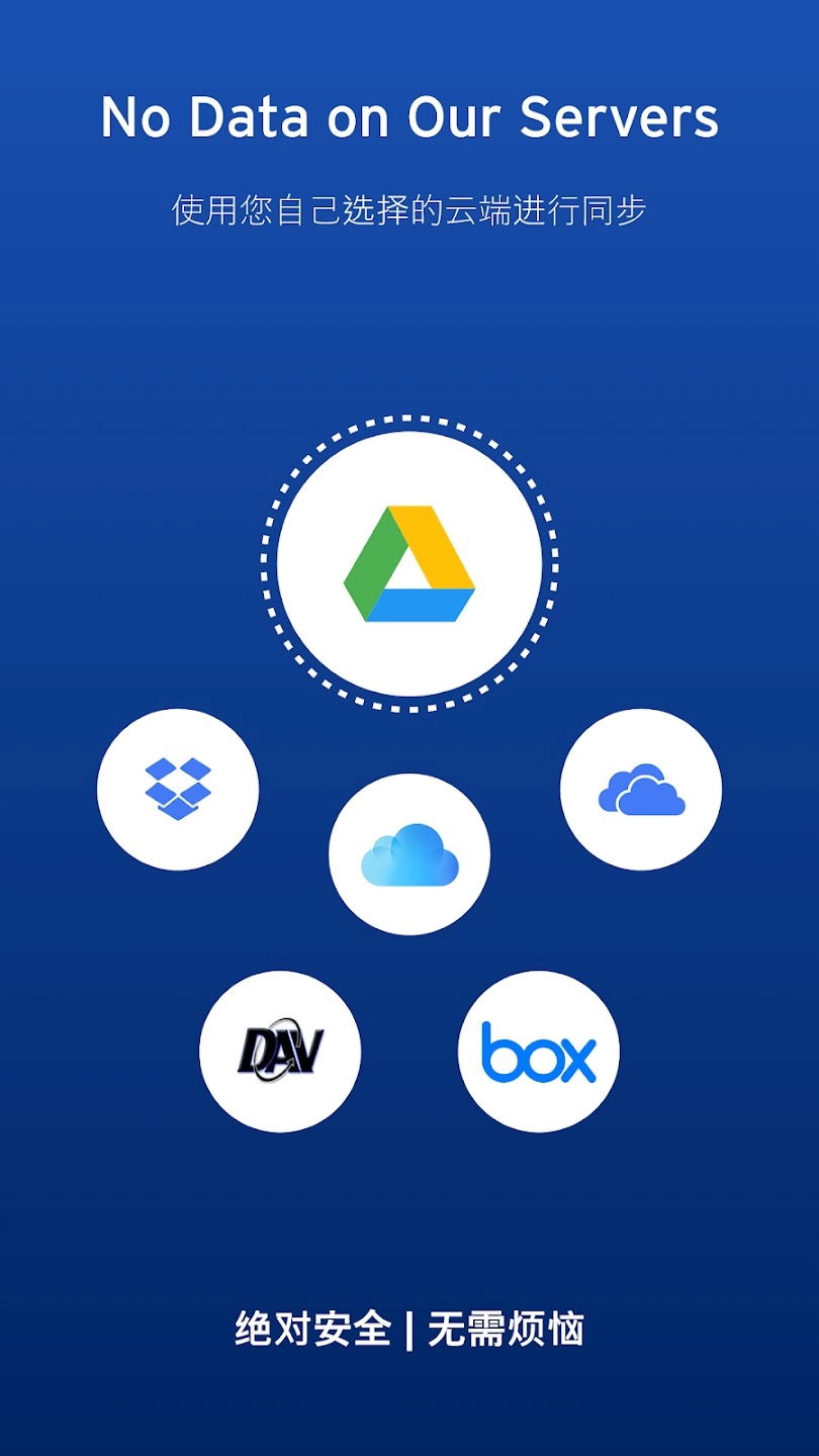 Enpass能让您灵活地把数据和各类云账户进行同步。要是您的设备不慎丢失或者被盗,开启云同步功能有助于提升数据的安全性。