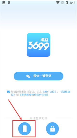 在【3699游戏】的登录界面,点击“其他登录方式”栏目中的手机图标,就能切换成通过手机号验证来登录的方式。
