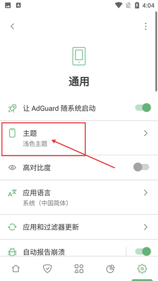 在通用设置页面里,找到显示为“浅色主题”的【主题】选项,点击它就能打开主题选择的弹窗界面。