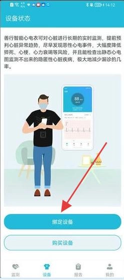 进入设备页面,查看设备状态介绍后,点击绑定设备按钮,按照提示完成智能心电设备的绑定流程,从而实现设备连接。