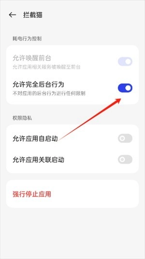 5、进入手机的电池管理界面,找到相关设置项,勾选“完全后台运行”选项,防止应用在后台运行时受到限制。