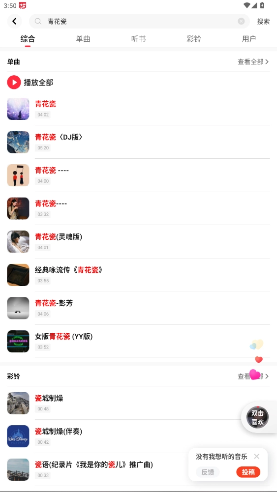 5、点击上方的搜索栏还可以搜索自己喜欢的歌曲