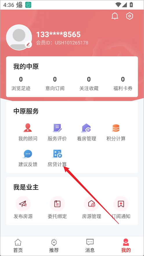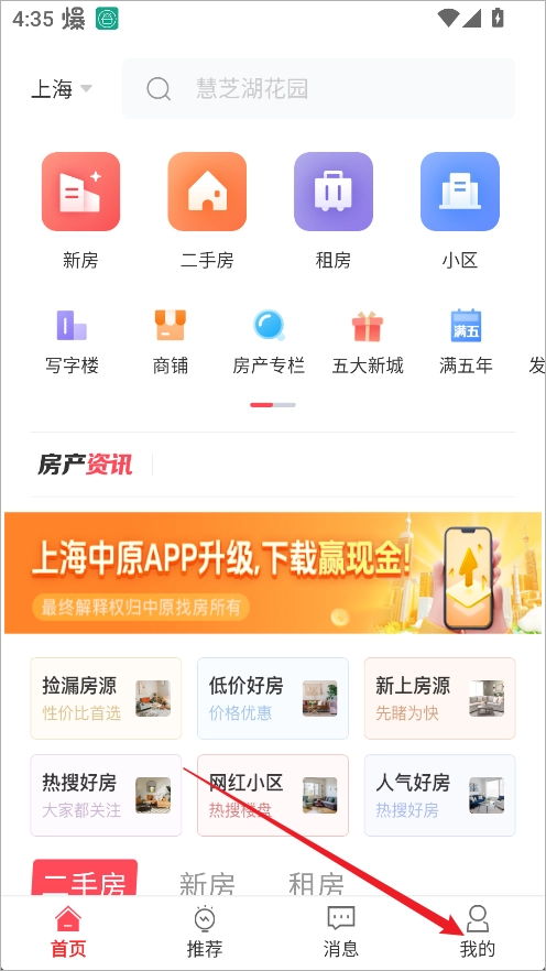 1、启动上海中原App,点击底部导航栏中的【我的】选项进入对应页面。