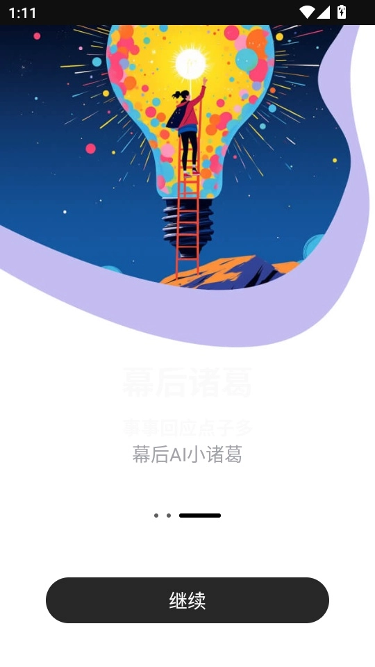 2. 随后在简单滑动浏览应用的三步功能简介后,点击“继续”按钮即可进入程序