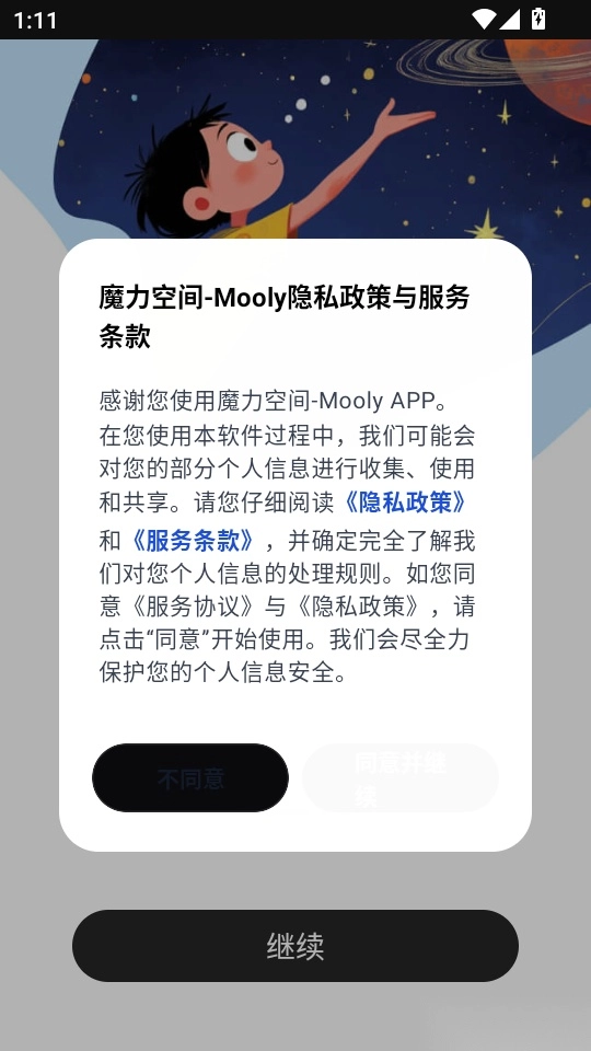 1. 首先打开软件,阅读说明后点击“同意并继续”按钮进入下一步操作。