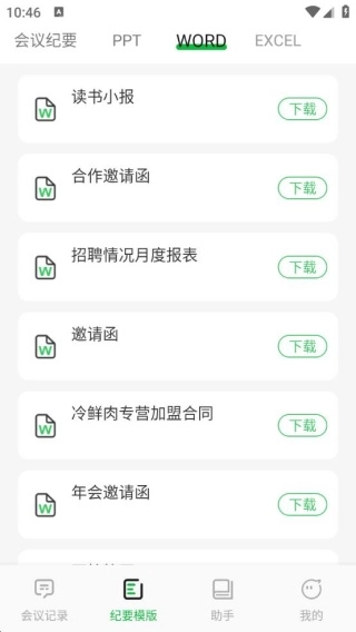 2、提供丰富多样的会议PPT、WORD、EXCEL模板以及各类专业PPT模板,能够满足不同办公场景下的模板使用需求。