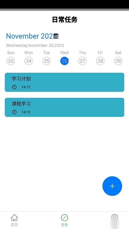 3、接下来,你可以在“日常任务”界面的右下方找到“圆圈+”图标按钮,点击它就能进入下一步操作。