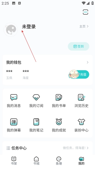1、在书城页面,点击底部的【我的】选项,即可进入个人中心的功能界面。