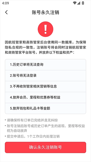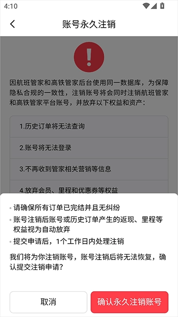 4、最后在弹出的提示选项框里,继续点击“确认永久注销账号”这一选项