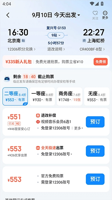 - 还没选到心仪座位?别担心!支持一键切换至下铺D/F坐席,让您的出行更舒适!