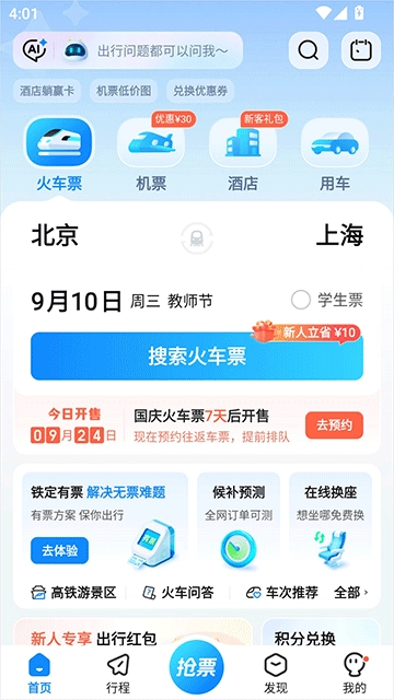 预订火车票7折起,住酒店也有优惠,新老客户还能领取大礼包,多重福利等你来享