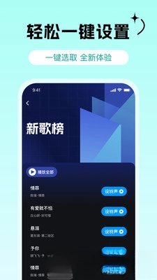 这款软件拥有庞大的资源库,更新也十分及时,搜索功能精准又高效,无论是经典老歌还是网红新曲都能找到,再搭配上来电秀功能,手机铃声的设置就变得简单又有趣了。