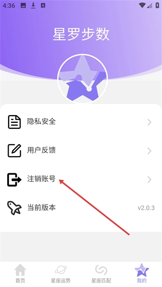 2、进入个人页面后,在功能列表里找到【注销账号】选项,点击该选项即可进入注销账号的提示页面。