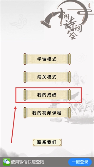 2、进入功能选择页面后,点击【我的成绩】选项,即可进入学习数据统计界面,在此处可以查看各项学习相关记录。