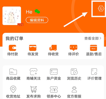 1. 打开义乌购首页,需先通过微信或手机号完成登录。进入首页后,在“我的”页面点击右上角的“设置”图标。