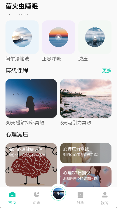 3. 点击底部导航栏中间的按钮,进入「睡眠」页面。