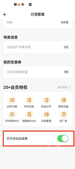 4、最后点击进入订阅管理页面,下滑至最底部,点击关闭【已开启自动续费】右侧的按钮即可。