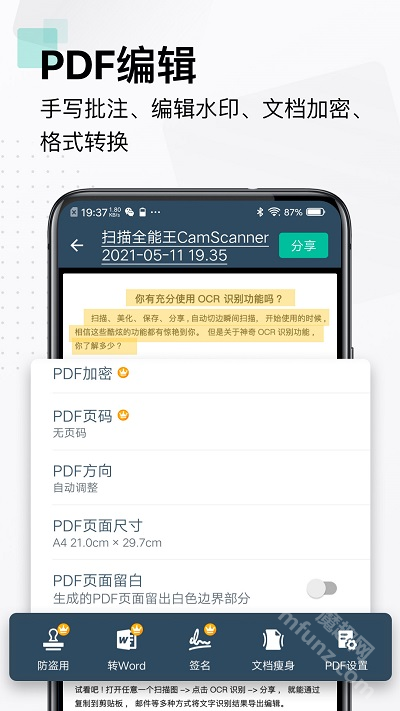 文档编辑更省心:扫描结束后,会依据实际需求提供功能快捷入口