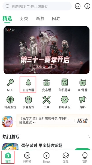 1、在魔趣网安装好7723游戏盒正版后,进入软件首页,点击“加速专区”