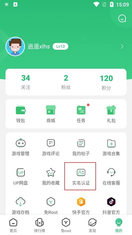 2.在个人中心中找到并点击实名认证选项;