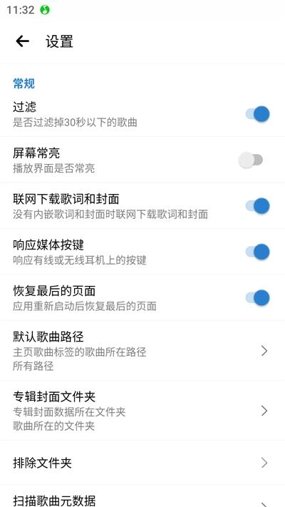 1、首先打开rplayer音乐播放器最新版本,进入设置界面后,向下滑动页面找到状态栏歌词相关选项。