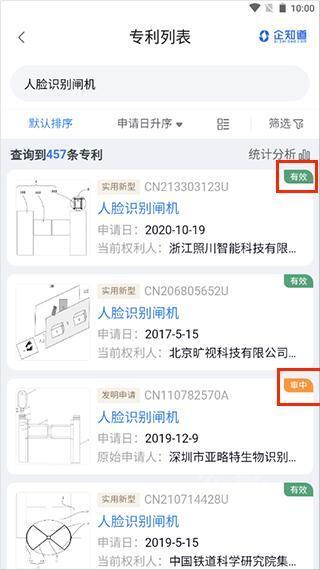 搜索结果呈现后,会看到多项专利相关结果,其中涵盖审核状态的结果与已通过的结果。