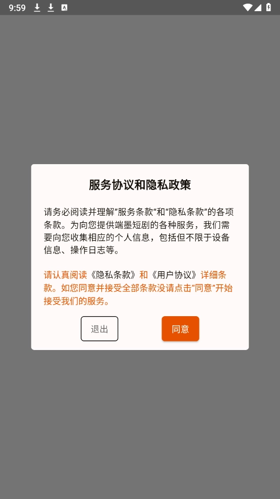 1、安装端墨短剧之后打开,同意相关的政策与协议。