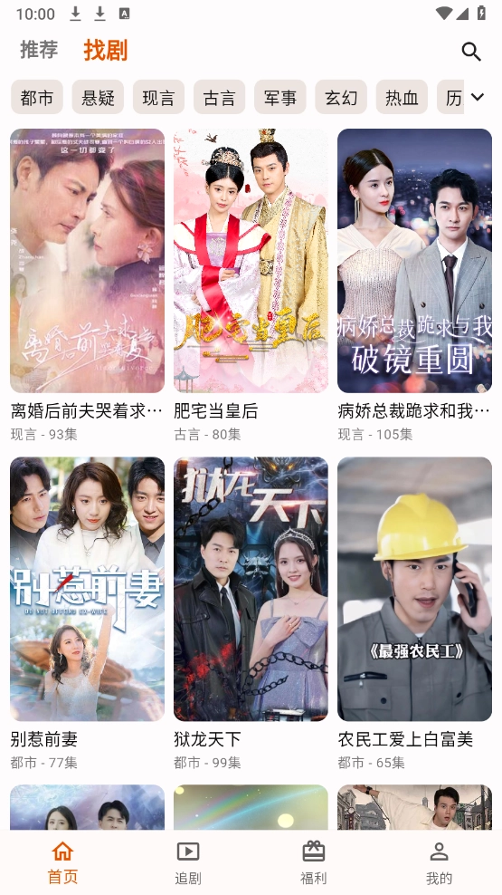 进入首页后,便能看到丰富多样的短剧资源,涵盖都市、悬疑、热血等各类题材。