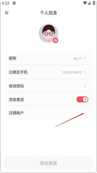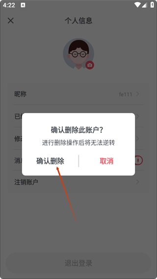 在个人信息页面,点击【注销账户】选项,系统会弹出账户删除确认窗口。