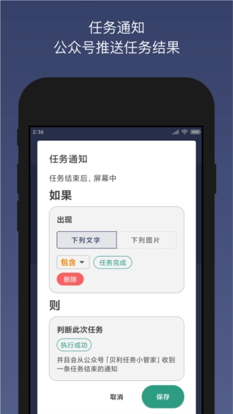 贝利自动点击器手机版还可以通过浮动控制面板以启动和结束自动点击,或者使用控制面板在屏幕上添加点击位置实现自动点击,并且软件里还了脚本工具箱为大家带来各种现成免费实用的手机脚本辅助。不仅如此,贝利自动连点器还提供了非常详细的图文教程以及包含20多个自动任务脚本供用户们直接使用,同时更是有着App签到、领取积分、自动点赞等多种实用功能来让大家自动点击快人一步!