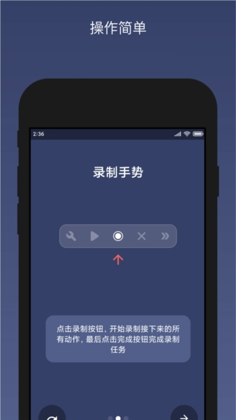 不需要ROOT权限,并可用于全局应用程序,录制手势操作后可直接通过悬浮按钮播放执行。